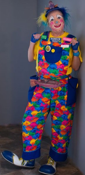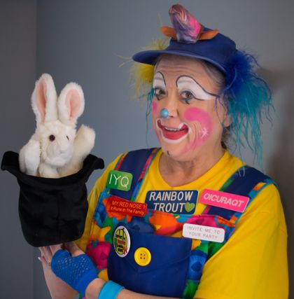 Rainbow Trout can appear in full white face clown and non-whiteface clown, or in professional entertainment attire. Whatever the occasion, let Rainbow Trout help make your next event memorable and successful providing great quality service. Remember to book your date early to insure a memorable event!